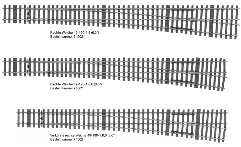 - zwischen den Herzstücken gut gerundet (1450 mm)